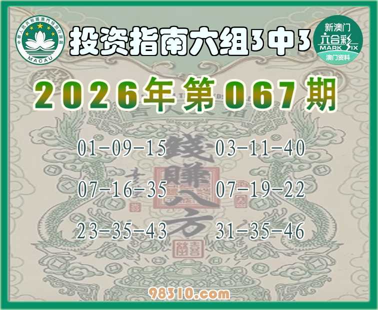 067期:《投资指南》 🍄六组3中3🍄