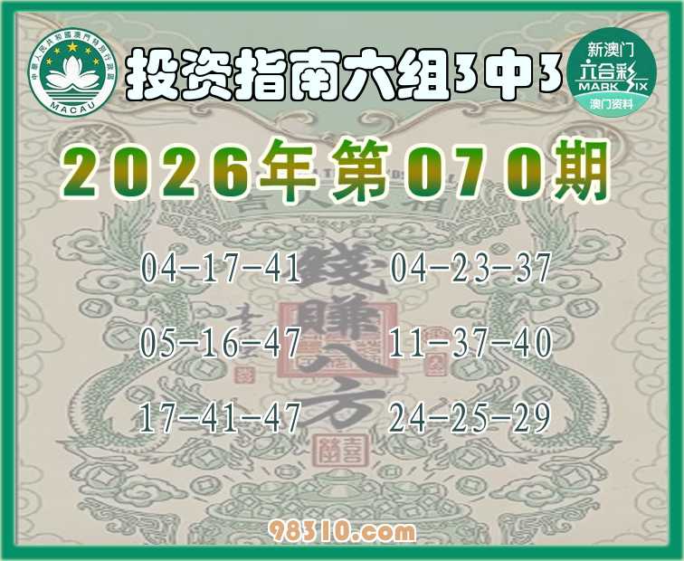 070期:《投资指南》 🍄六组3中3🍄
