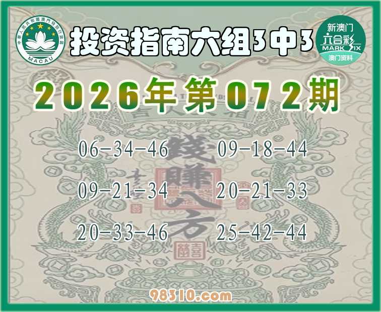 072期:《投资指南》 🍄六组3中3🍄
