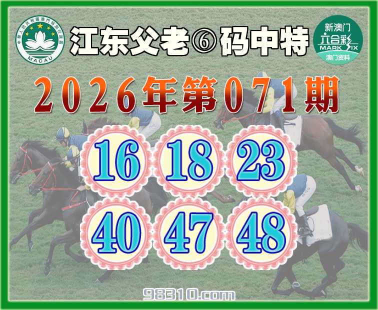 071期:『江东父老』 ⑥码中特【16.18.23.40.47.48】开:48准验证上榜