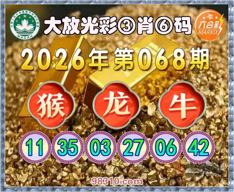068期: 《大放光彩》 ③肖⑥码【猴龙牛】开:猴23准验证上榜