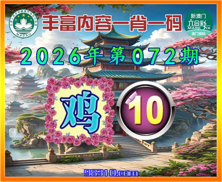 072期:《丰富内容》 一肖一码【鸡】【10】开:鸡46准验证上榜