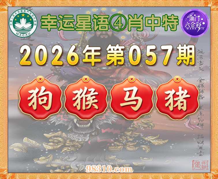 057期:《幸运星语》 ④肖中特【狗.猴.马.猪】开:猴23准