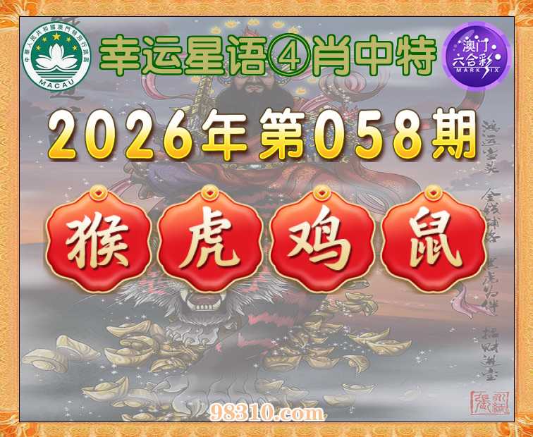 058期:《幸运星语》 ④肖中特【猴.虎.鸡.鼠】开:鼠31准