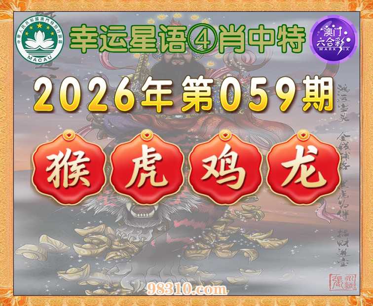 059期:《幸运星语》 ④肖中特【猴.虎.鸡.龙】开:鸡10准