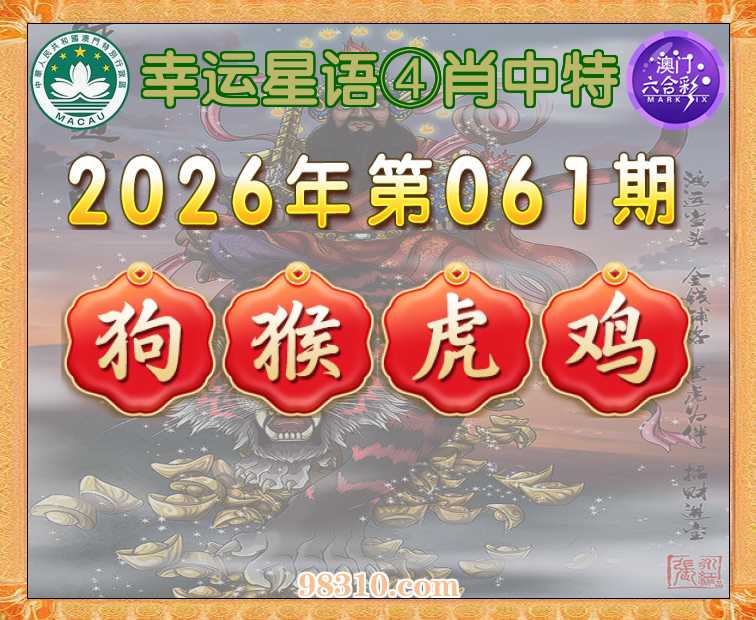 061期:《幸运星语》 ④肖中特【狗.猴.虎.鸡】开:虎29准