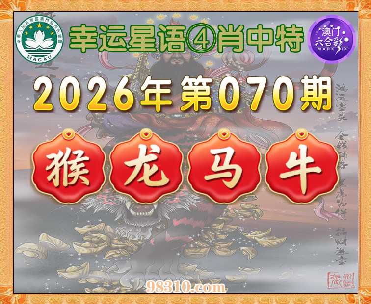 070期:《幸运星语》 ④肖中特【猴.龙.马.牛】开:马25准验证上榜