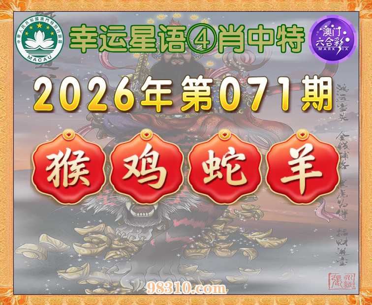 071期:《幸运星语》 ④肖中特【猴.鸡.蛇.羊】开:羊48准验证上榜