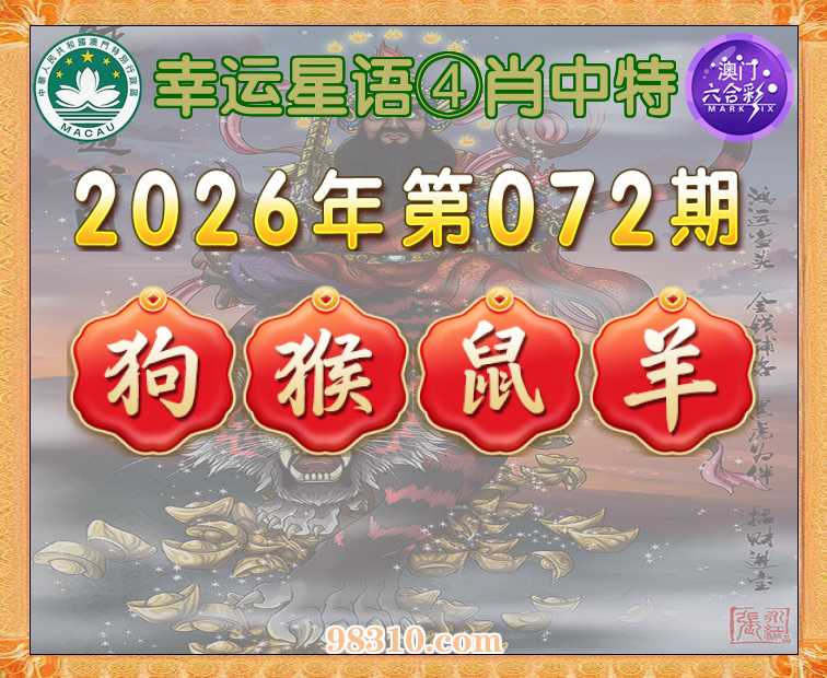 072期:《幸运星语》 ④肖中特【狗.猴.鼠.羊】开:鸡46错