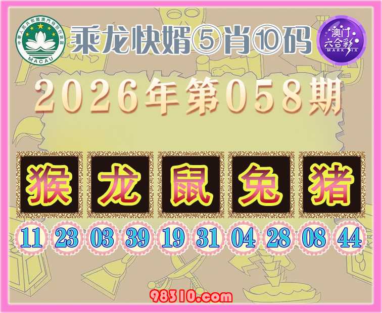 058期:〖乘龙快婿〗 ⑤肖⑩码【猴龙鼠兔猪】开:鼠31准