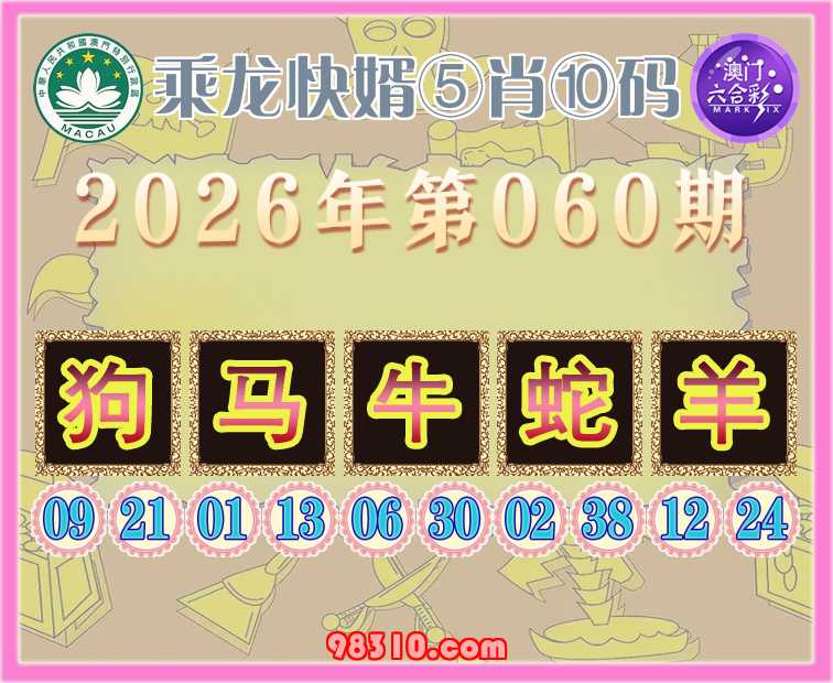 060期:〖乘龙快婿〗 ⑤肖⑩码【狗马牛蛇羊】开:狗09准