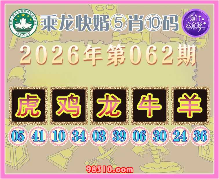062期:〖乘龙快婿〗 ⑤肖⑩码【虎鸡龙牛羊】开:羊24准
