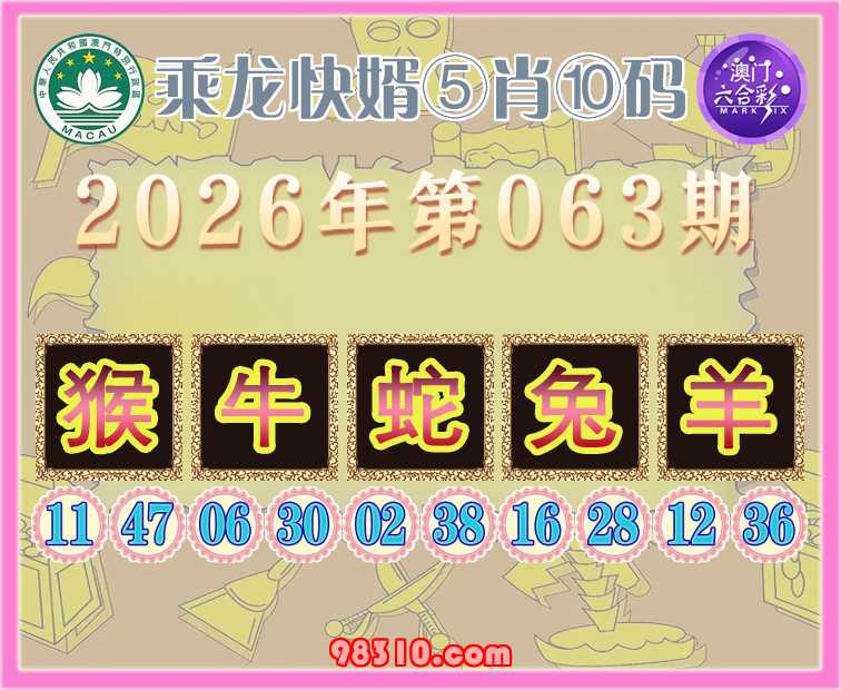 063期:〖乘龙快婿〗 ⑤肖⑩码【猴牛蛇兔羊】开:兔28准