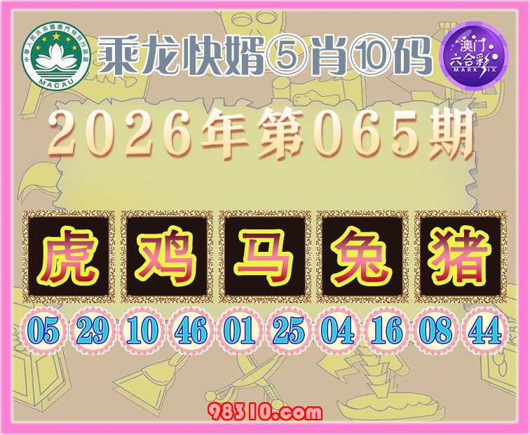 065期:〖乘龙快婿〗 ⑤肖⑩码【虎鸡马兔猪】开:虎05准