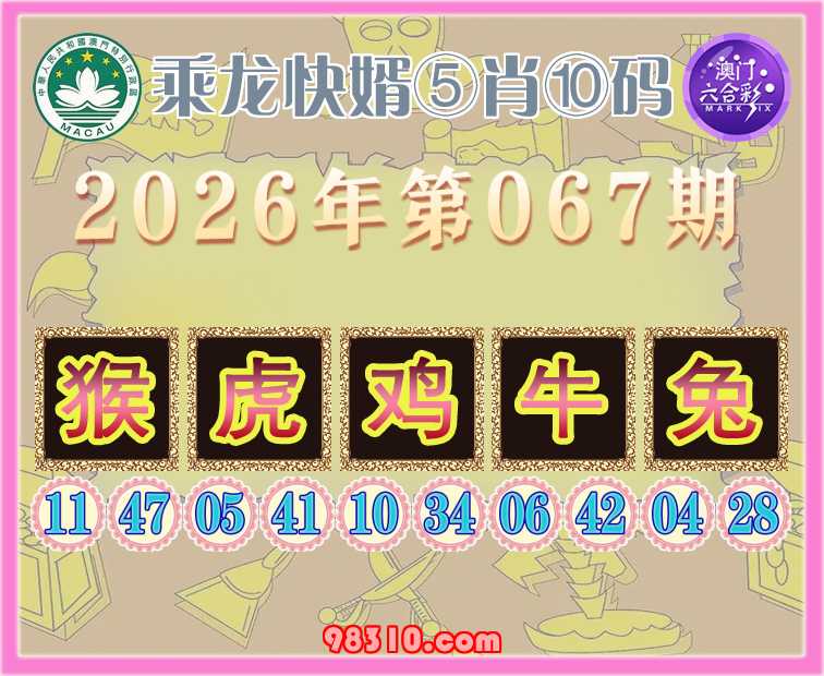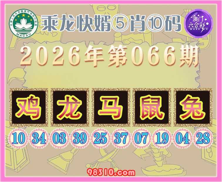 066期:〖乘龙快婿〗 ⑤肖⑩码【鸡龙马鼠兔】开:马37准