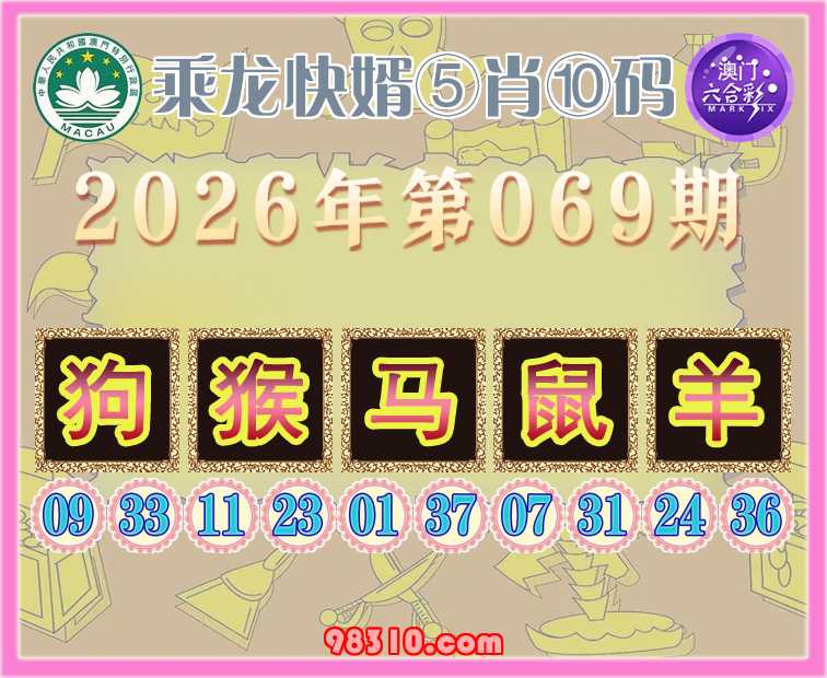 069期:〖乘龙快婿〗 ⑤肖⑩码【狗猴马鼠羊】开:羊24准
