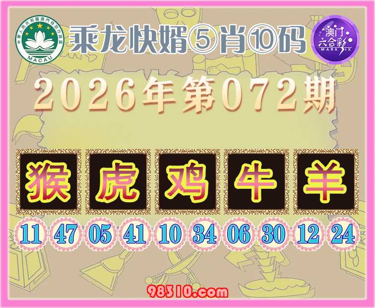 072期:〖乘龙快婿〗 ⑤肖⑩码【猴虎鸡牛羊】开:鸡46准验证上榜