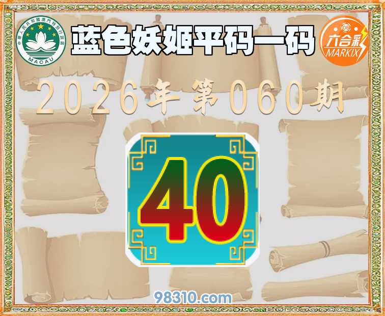 060期:【蓝色妖姬】 平码一码【40】开:兔40准