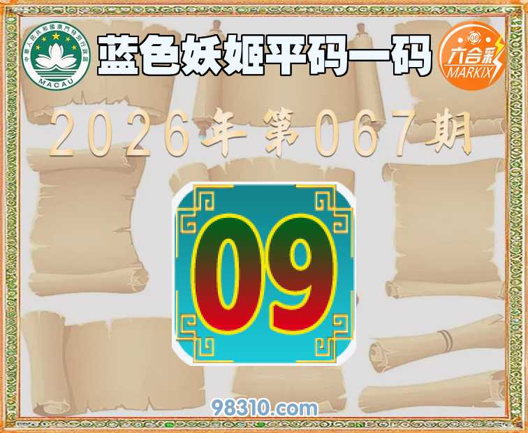 067期:【蓝色妖姬】 平码一码【09】开:狗09准