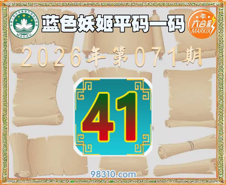 071期:【蓝色妖姬】 平码一码【41】开:虎41准