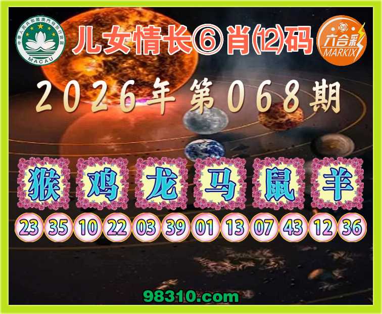 068期:《儿女情长》 ⑥肖⑿码【猴鸡龙马鼠羊】开:猴23准