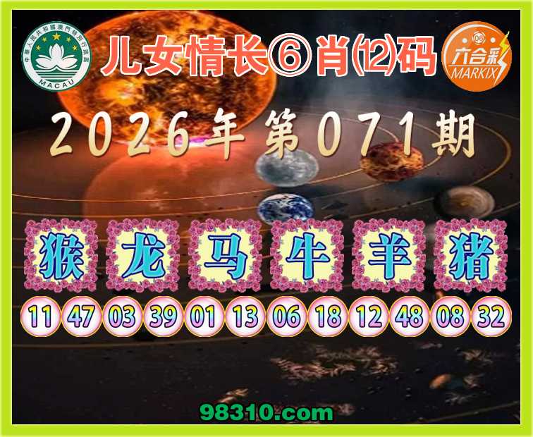 070期:《儿女情长》 ⑥肖⑿码【鸡龙马鼠兔羊】开:马25准