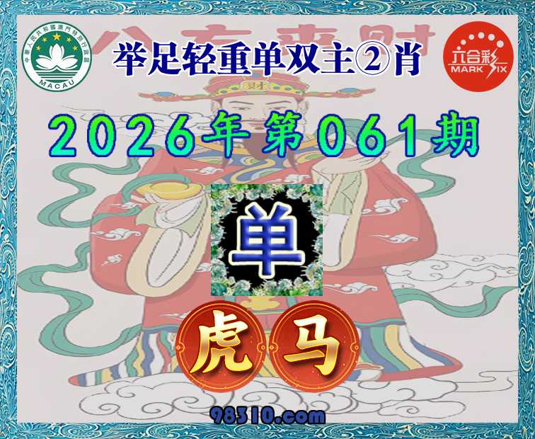 061期: 『举足轻重』 单双主②肖【单-虎马】开:虎29准