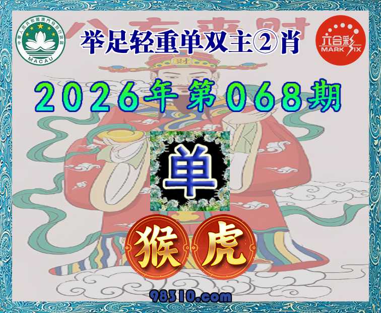 068期: 『举足轻重』 单双主②肖【单-猴虎】开:猴23准
