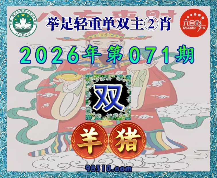 071期: 『举足轻重』 单双主②肖【双-羊猪】开:羊48准