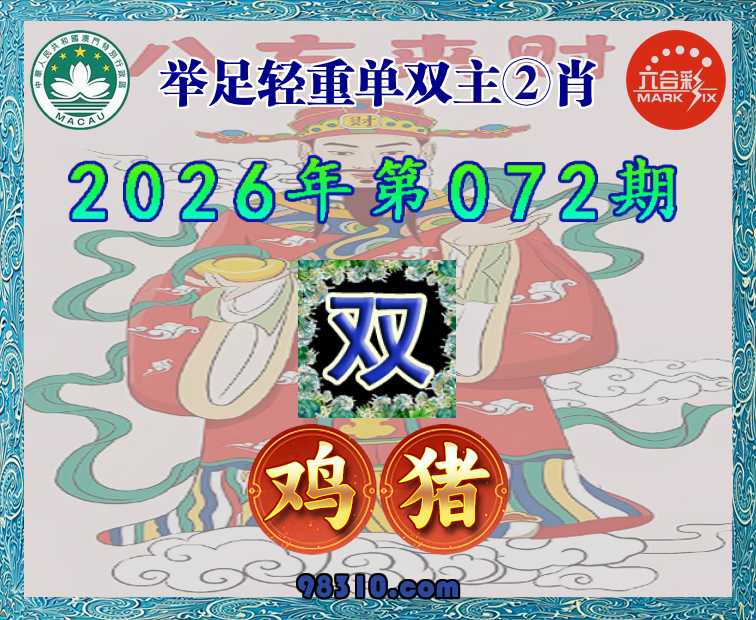 072期: 『举足轻重』 单双主②肖【双-鸡猪】开:鸡46准