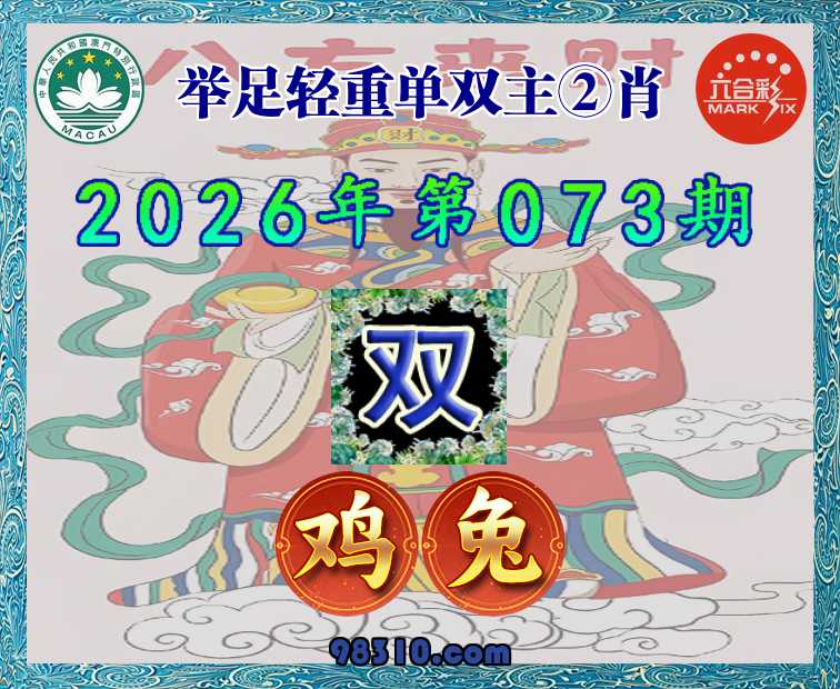 073期: 『举足轻重』 单双主②肖【双-鸡兔】开:鸡34准验证上榜