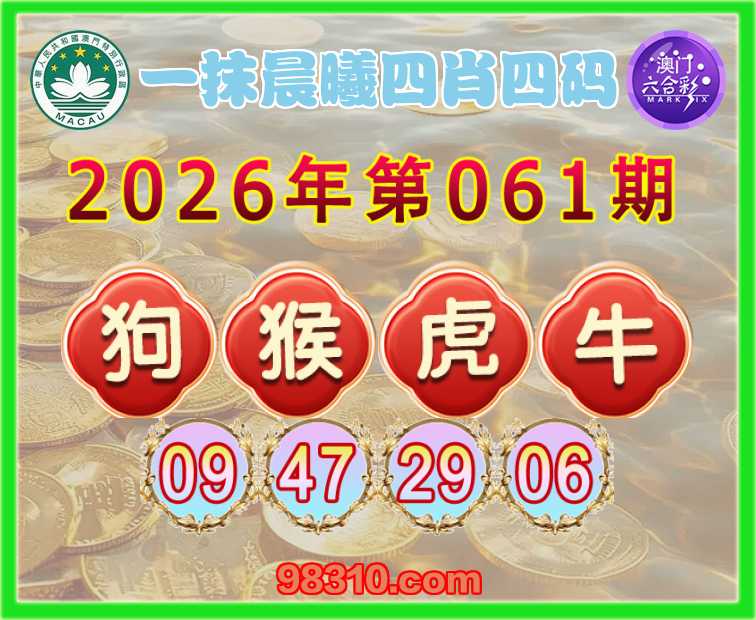 061期:【一抹晨曦】 四肖四码【狗猴虎牛】【09.47.29.06】开:虎29准