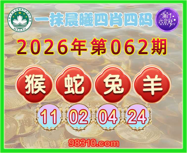 062期:【一抹晨曦】 四肖四码【猴蛇兔羊】【11.02.04.24】开:羊24准