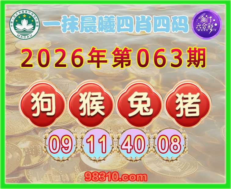 063期:【一抹晨曦】 四肖四码【狗猴兔猪】【09.11.40.08】开:兔28准