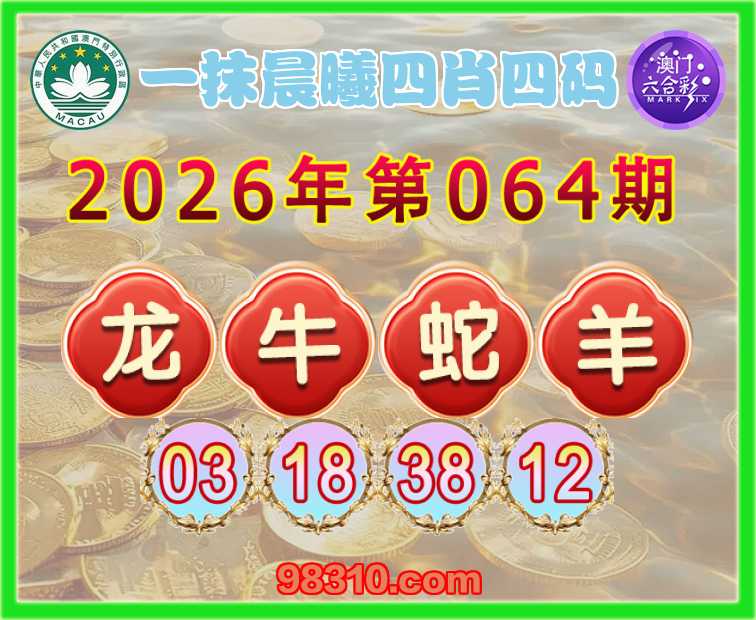 064期:【一抹晨曦】 四肖四码【龙牛蛇羊】【03.18.38.12】开:牛18准