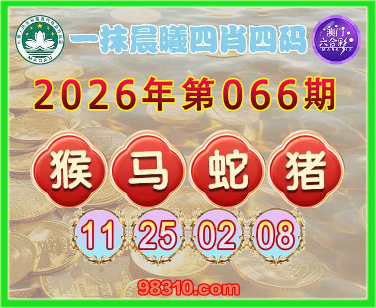 066期:【一抹晨曦】 四肖四码【猴马蛇猪】【11.25.02.08】开:马37准