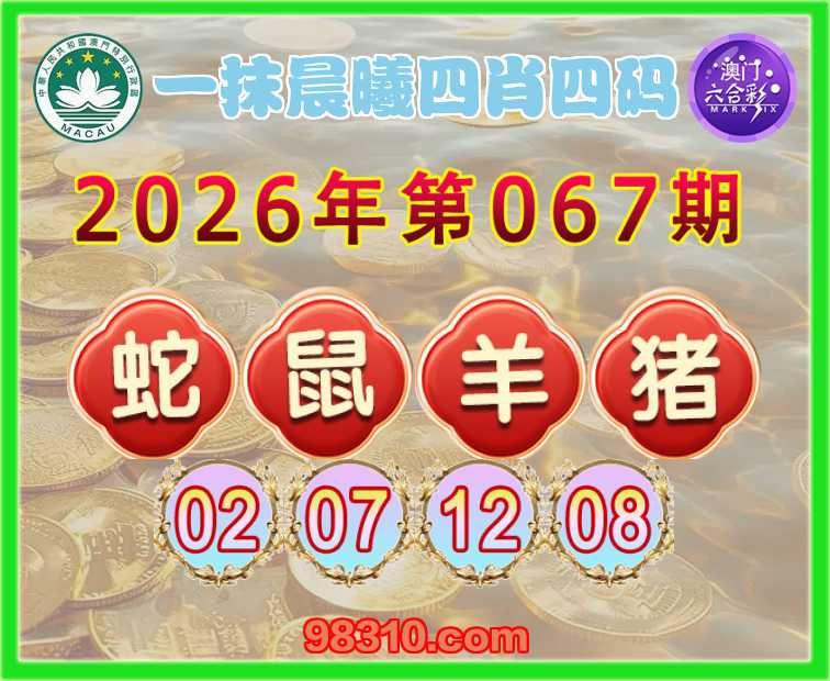 067期:【一抹晨曦】 四肖四码【蛇鼠羊猪】【02.07.12.08】开:虎05错