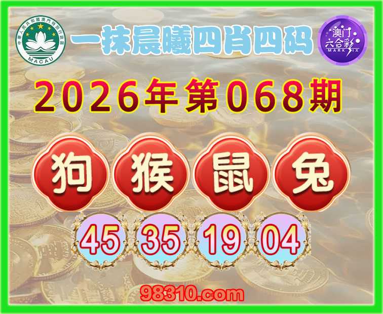 068期:【一抹晨曦】 四肖四码【狗猴鼠兔】【45.35.19.04】开:猴23准